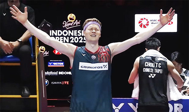 Jakarta, Indonesia — Denmark’s Anders Antonsen clinched his first title of the year with a commanding 22-20, 21-14 win over Taiwan’s Chou Tien Chen in the men’s singles final at the 2025 Indonesia Open. It marks his return to the winner’s circle after a nine-month drought, with his last victory coming at the 2024 China Open.