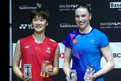 Chen Yufei (L) and Line Højmark Kjaersfeldt pose for picture at the awards ceremony of the 2025 Swiss Open. (Photo: BWF) Basel, Switzerland – March 23, 2025 – The 2020 Tokyo Olympic champion Chen Yufe...