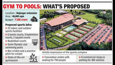 “The complex will have six tennis courts, nine badminton courts, two squash courts, basketball courts, and semi-Olympic size swimming pools, box cricket, and a practice pitch for cricket, among other sports. The complex can also hold national-level tournaments,” said municipal commissioner Vikramaditya Singh Malik.