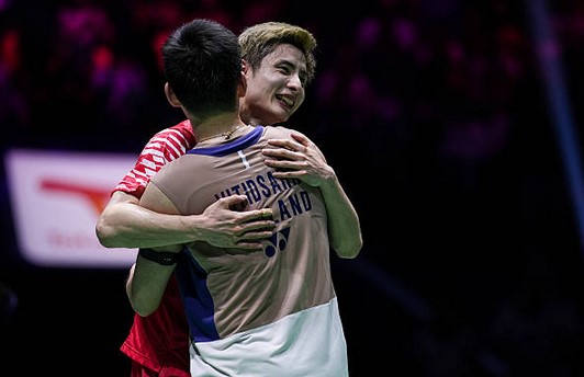 Shi Yu Qi congratulated by Kunlavut Vitidsarn after an epic men’s singles final at the 2025 Badminton World Championships in Paris. (Photo: AFP)